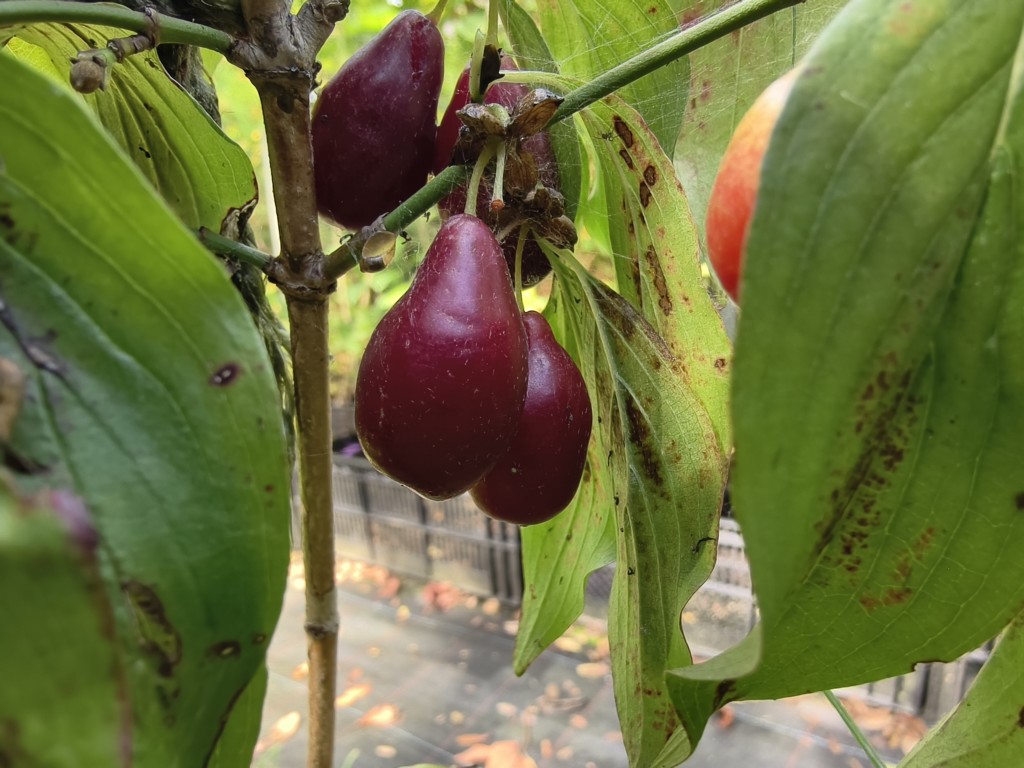 Bemerkung: Vollkommen winterhartes Gehölz, wobei die Blüten etwas spätfrostempfindlich sind. Für ausreichend Fruchtbildung ist die Pflanzung mehrerer Exemplare bzw. verschiedener Sorten ratsam. Als Befruchter können auch Pflanzen der Wildart genutzt werden.